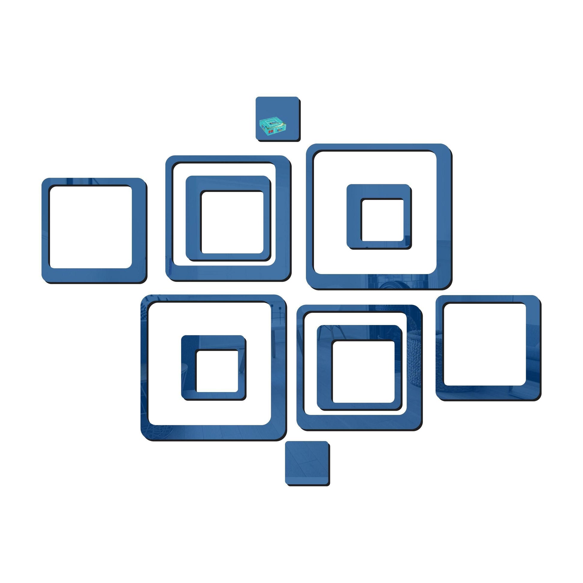- 12 Square 3D Acrylic Mirror Wall Stickers (Blue)